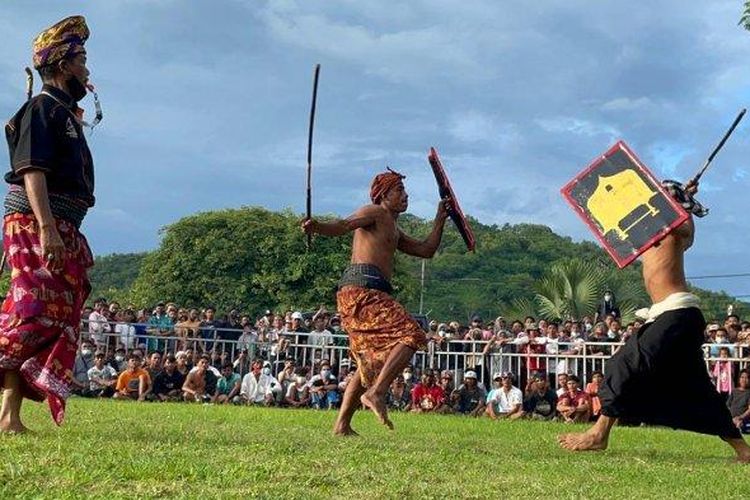 Peresean is a traditional art of the Sasak people of Lombok, West Nusa Tenggara, which involves two men fighting with rattan sticks and shields made of thick buffalo skin. This fight lasts for five rounds and is considered finished if one of the fighters draws blood. The winner is the fighter who is not injured and it is the main attraction for tourists visiting Lombok.